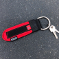 Die Schlüsselanhänger für alle an Bord gibt es in rot/schwarz, orange oder gelb. Für diese massiven Einzelstücke haben wir nicht nur den Stoff der alten Seenotrettter-Rettungswesten per Hand verarbeitet, auch der schwere Sicherheitsring der Weste hat eine neue Funktion bekommen.